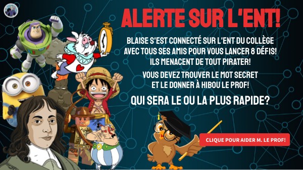 Blaise s'est connecté sur l'ent du collège avec tous ses amis pour vous lancer 8 défis! Ils menacent de tout pirater!