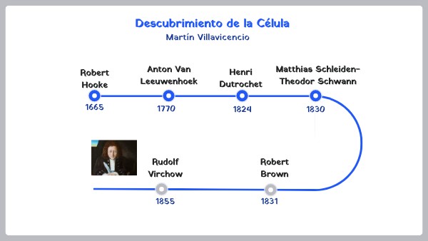 https://es.slideshare.net/currorubio/19-cientficos-y-teora-celular https://www.timetoast.com/timelines/teoria-celular-ba6a0e50-76e2-47bc-a834-ec813428097c https://www.timetoast.com/timelines/linea-de-tiempo-sobre-la-celula https://sociedaddecitologia.org.ar/sac/fichas-teoria-celular/ https://www.biografiasyvidas.com/biografia/b/brown_robert.htm https://askabiologist.asu.edu/biolog%C3%ADa-moderna#:~:text=Theodor%20Schwann%20y%20Matthias%20Schleiden,de%20una%20sola%20o%20varias. https://www.clinicacheca.com/historia-de-la-oncologia-ii-rudolf-virchow-y-su-teoria-celular/#:~:text=En%20el%20curso%20de%20sus,el%20animal%20de%20otro%20animal.