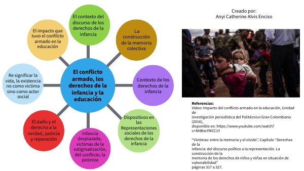 Referencias:Video: Impacto del conflicto armado en la educación, Unidad deinvestigación periodística del Politécnico Gran Colombiano (2016),disponible en: https://www.youtube.com/watch?v=NHBscYMCC1Y“Víctimas: entre la memoria y el olvido”, Capítulo “Derechos de lainfancia: del discurso político a la representación. La construcción de lamemoria de los derechos de niños y niñas en situación de vulnerabilidad”páginas 317 a 327.
