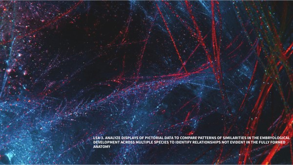 LS4-3. Analyze displays of pictorial data to compare patterns of similarities in the embryological development across multiple species to identify relationships not evident in the fully formed anatomy