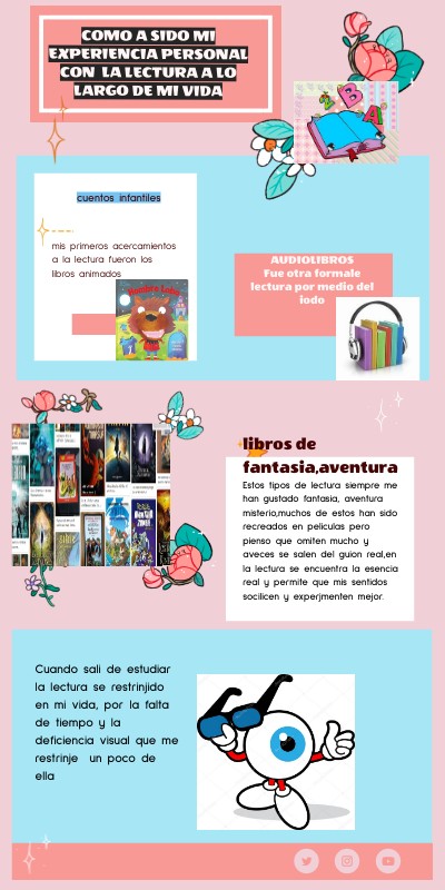 Cuando sali de estudiar la lectura se restrinjido en mi vida, por la falta de tiempo y la deficiencia visual que me restrinje un poco de ella