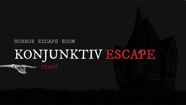 "Ein fürchterlicher Geist hat die Gustav in einen Ort des Horrors verwandelt. Er ist dazu verdammt, so lange durch die Klassen zu wandeln, bis alle den Konjunktiv beherrschen. Vorher kann keine neue Unterrichtsreihe begonnen werden. Der schreckliche Geist muss seine Fähigkeiten zur Grammatik unter Beweis stellen. Hilf ihm dabei! Du musst alle Aufgaben richtig lösen und vermisste Gegenstände finden, um in alle Räume zu gelangen, damit du den bessenen Geist vertreiben kannst. Folge den Hinweisen und passe auf, nicht auch in die ewige Verdammniss des Konjunktivs zu geraten..."