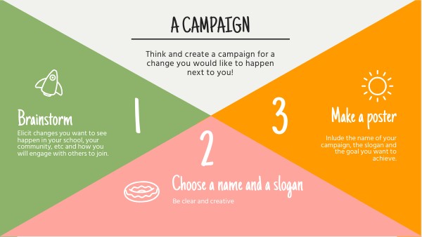 Think and create a campaign for a change you would like to happen next to you!