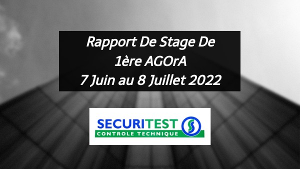 Rapport De Stage De 1ère AGOrA7 Juin au 8 Juillet 2022