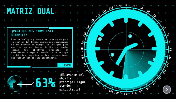 Esta metodología pretende ser una ayuda para la gestión del tiempo cuando nos encontramos en una reunión de equipo. Es una guía para que los equipos dentro de Horizon puedan lograr los objetivos previstos en determinado tiempo o reunión, a la vez que se detectan tangentes en las conversaciones que también son de suma importancia.