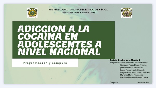 adiccion a la cocaÍna en adolescentes a nivel nacional