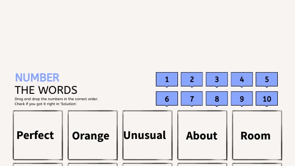 Drag and drop the numbers in the correct order.Check if you got it right in 'Solution'.
