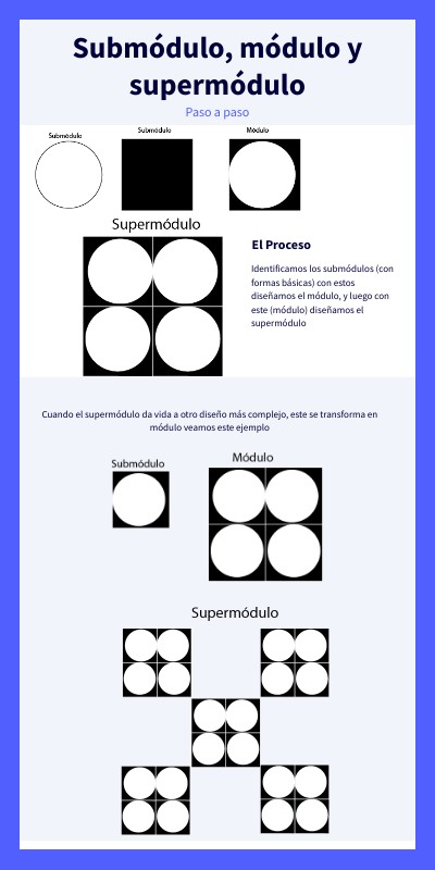 Identificamos los submódulos (con formas básicas) con estos diseñamos el módulo, y luego con este (módulo) diseñamos el supermódulo