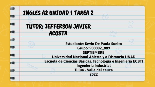 Ingles A2 Unidad 1 Tarea 2 TUTOR: JEFFERSON JAVIER ACOSTA
