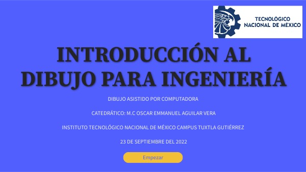 DIBUJO ASISTIDO POR COMPUTADORA CATEDRÁTICO: M.C OSCAR EMMANUEL AGUILAR VERA INSTITUTO TECNOLÓGICO NACIONAL DE MÉXICO CAMPUS TUXTLA GUTIÉRREZ 23 DE SEPTIEMBRE DEL 2022