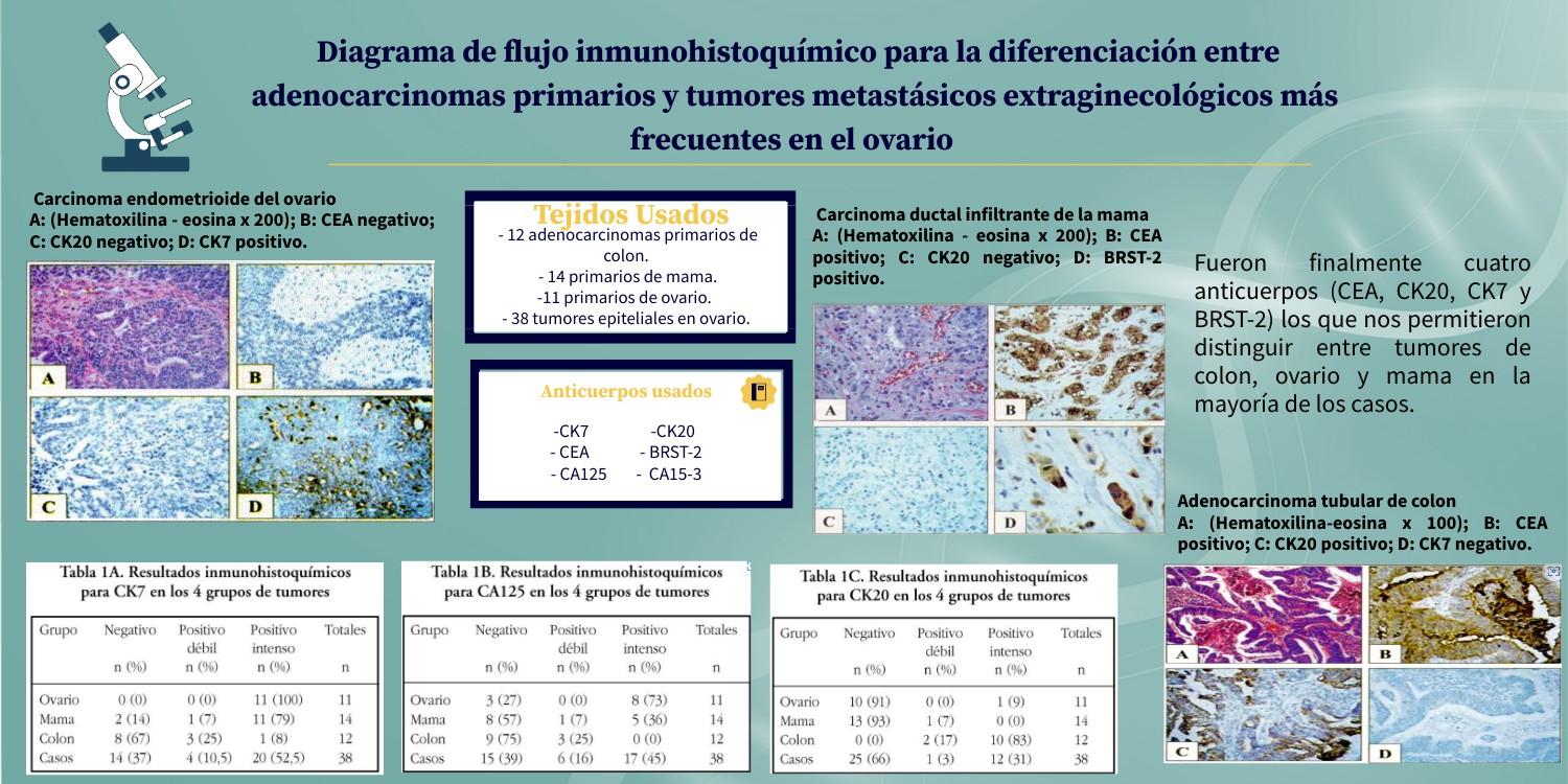 Diagrama de flujo inmunohistoquímico para la diferenciación entre adenocarcinomas primarios y tumores metastásicos extraginecológicos más frecuentes en el ovario