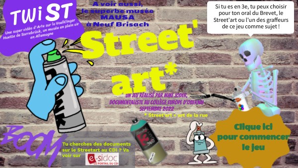 Si tu es en 3e, tu peux choisir pour ton oral du Brevet, le Street'art ou l'un des graffeurs de ce jeu comme sujet !