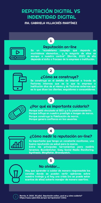 Borrás, H. (2021, 30 julio). Reputación online: ¿qué es y cómo cuidarla? https://www.cyberclick.es/que-es/reputacion-online