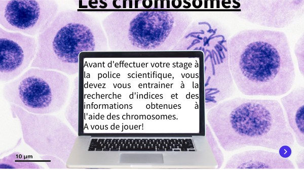 Avant d'effectuer votre stage à la police scientifique, vous devez vous entrainer à la recherche d'indices et des informations obtenues à l'aide des chromosomes. A vous de jouer!