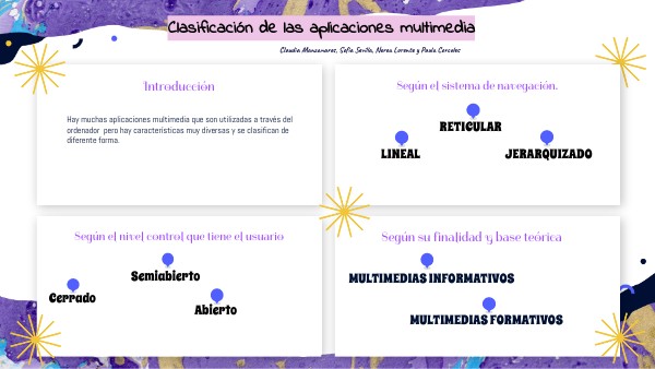 Hay muchas aplicaciones multimedia que son utilizadas a través del ordenador pero hay características muy diversas y se clasifican de diferente forma.