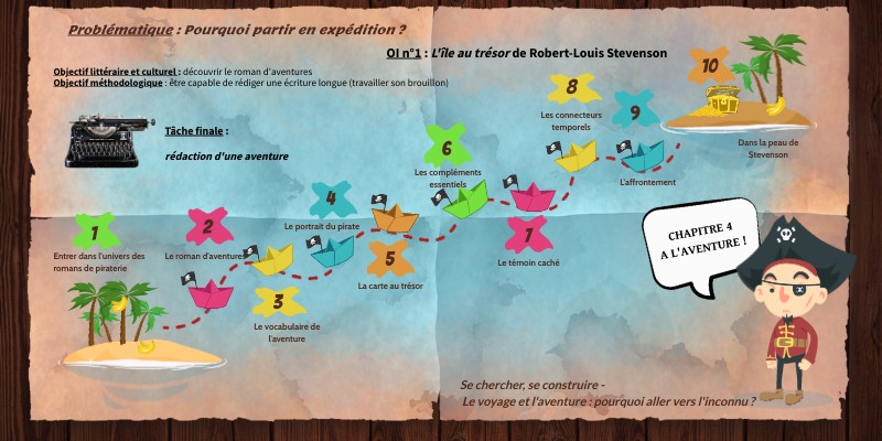 Objectif littéraire et culturel : découvrir le roman d'aventures Objectif méthodologique : être capable de rédiger une écriture longue (travailler son brouillon)