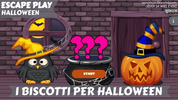CERCATE NELLA CASA DEL GUFO I 4 BISCOTTI NASCOSTI DALLA ZUCCA MALEFICA! SUPERATE GLI ENIGMI PER OTTENERE UN BISCOTTO QUANDO TROVATE TUTTI I BISCOTTI USCITE DALLA PORTA DI CASA BUTTATE I BISCOTTI NEL PENTOLONE E GODETEVI CON ME LA FESTA! CORAGGIO!