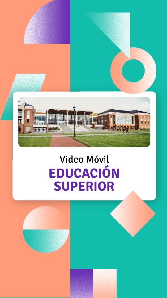 Plantilla de video para presentar una educación superior en formato móvil. Destaca programas, eventos y recursos de manera atractiva. Conecta con estudiantes potenciales. Plantilla gratuita.