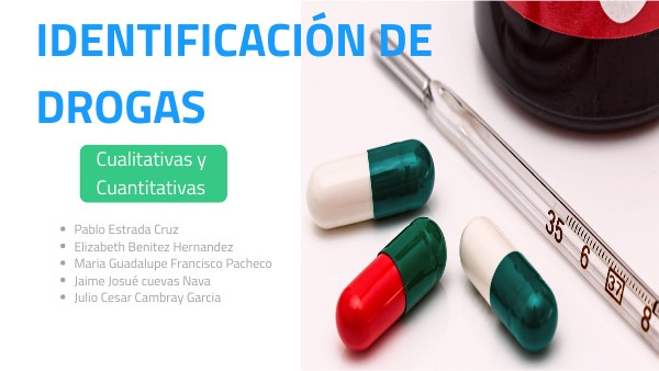 Hay métodos de identificación en los que intervienen dos tipos: De reacciones químicas; que tiene lugar al combinar una droga con ciertos compuestos. También se usa el método de las reacciones microcristalinas, en el que la reacción química produce cierta forma de cristales que al observarse al microscopio, nos permite saber de que sustancia se trata.