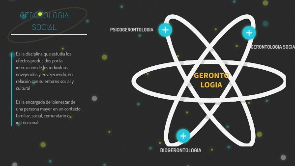 Es la disciplina que estudia los efectos producidos por la interacción de los individuos envejecidos y envejeciendo, en relación con su entorno social y cultural Es la encargada del bienestar de una persona mayor en un contexto familiar, social, comunitario o institucional