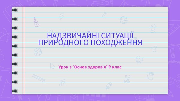 Зсув — сповзання і відрив мас гірських порід вниз схилом під дією сили тяжіння. Причини виникнення: перезволоження грунту дощовими опадами, танення снігів, землетруси, підмив схилів та непродумана діяльність людини (вибухові та земляні роботи, вирубка лісу на схилах пагорбів та інше). Попередні типові ознаки: Ознакою зсуву є заклинювання дверей та вікон будівель, просочування води на зсувонебезпечних схилах та зміщення грунту.
