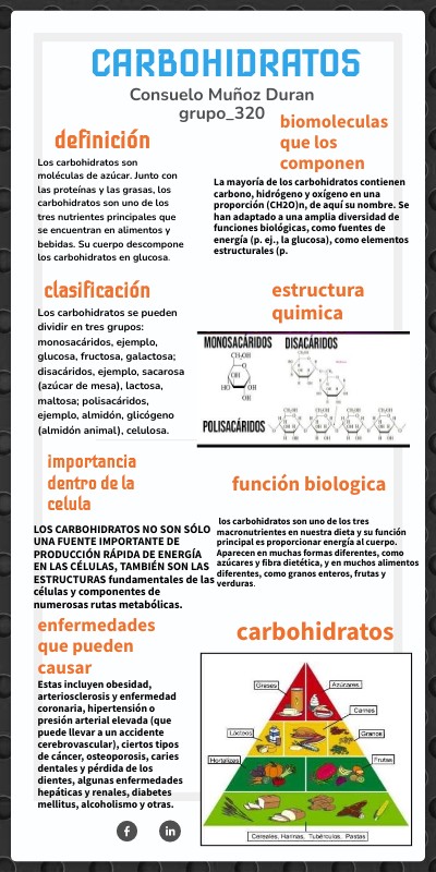 Los carbohidratos son moléculas de azúcar. Junto con las proteínas y las grasas, los carbohidratos son uno de los tres nutrientes principales que se encuentran en alimentos y bebidas. Su cuerpo descompone los carbohidratos en glucosa.
