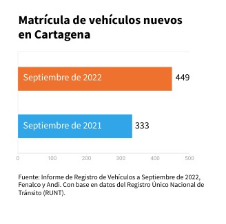 Fuente: Informe de Registro de Vehículos a Septiembre de 2022, Fenalco y Andi. Con base en datos del Registro Único Nacional de Tránsito (RUNT).