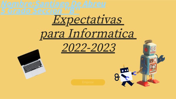 Para este año escolar mis expectativas en el área de informatica es aprender más sobre la informacion digital,aprender a usar las aplicaciones importantes para hacer prensentaciones,tarea,etc.
