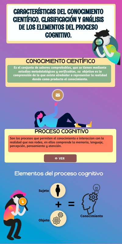características del conocimiento científico, clasificación y análisis de los elementos del proceso cognitivo.