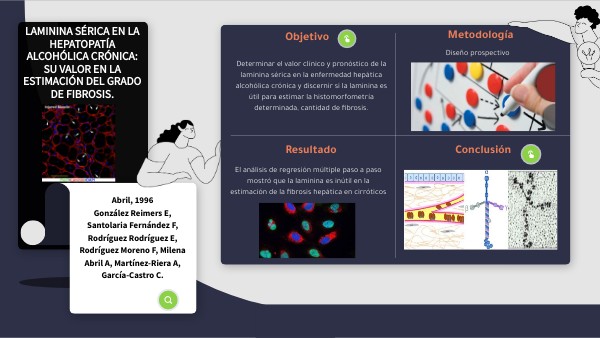 Determinar el valor clínico y pronóstico de la laminina sérica en la enfermedad hepática alcohólica crónica y discernir si la laminina es útil para estimar la histomorfometría determinada, cantidad de fibrosis.