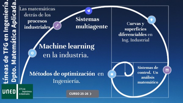 Se tratan las líneas del PFG en la ETSI Industriales de la UNED propuestas por el Dpto. de Matemática Aplicada