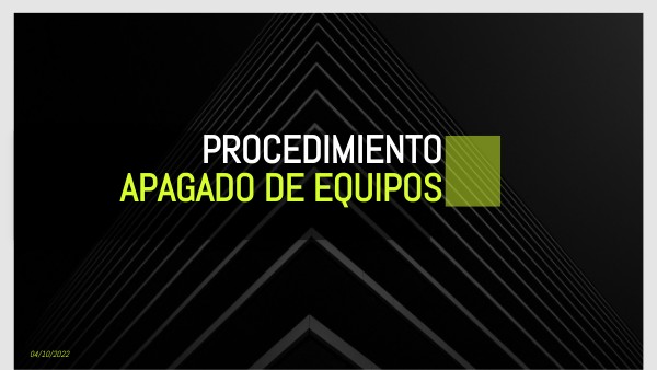Los equipos deben apagarse desde su interruptor principal. A excepción de los equipos que necesiten estar energizados para procesos de limpieza y sanitización.