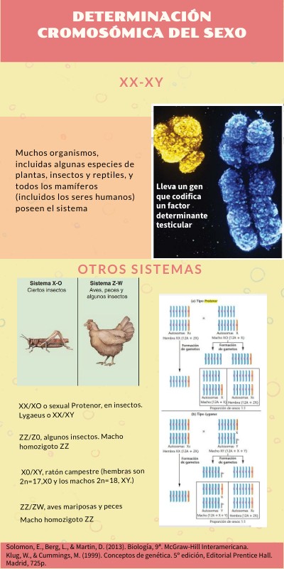 XX/XO o sexual Protenor, en insectos. Lygaeus o XX/XY ZZ/Z0, algunos insectos. Macho homozigoto ZZ X0/XY, ratón campestre (hembras son 2n=17,X0 y los machos 2n=18, XY.) ZZ/ZW, aves mariposas y peces Macho homozigoto ZZ