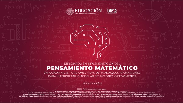 Dr. Alejandro Javier Díaz Barriga Casales, Director del proyecto / Mat. Andrés Alonso Flores Marín, Coordinador M. en C. Óscar Alberto Garrido Jiménez, Coordinador académico / M. en C. José Luis Álvarez López, Coordinador de facilitadores / M. en C. Alma Violeta García López, Coordinadora de facilitadores Mtro. Francisco Rivera Ramírez, Diseño académico / Mat. Carla Alejandra Rivera Ramírez, Diseño académico / M. en C. Guadalupe Yañez Barrón, Diseño académico / Dra. Itzel Ricaño Cornejo, Diseño académico Lic. Guillermo Vázquez Zepeda, Diseño académico / Mtra. María Concepción García Rábago, Diseño académico / Mtro. Luis Felipe de Jesús Malacara Preciado, Diseño académico / Diana Rivera Hernández, Diseño académico Lic. Carolina Chávez Muñoz, Diseño instruccional / M. en C.C. Citlali Medal Medellín, Diseño instruccional