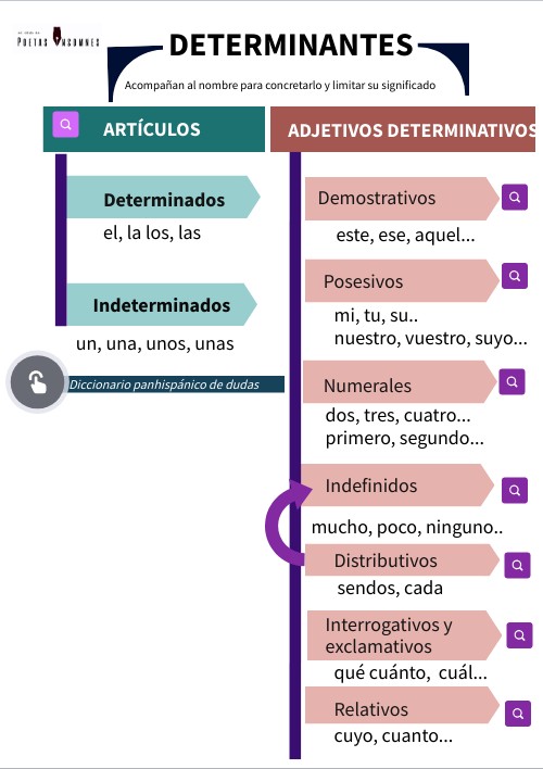 Son los que acompañan a los nombres e informan con exactitud de cantidades y órdenes de colocación.