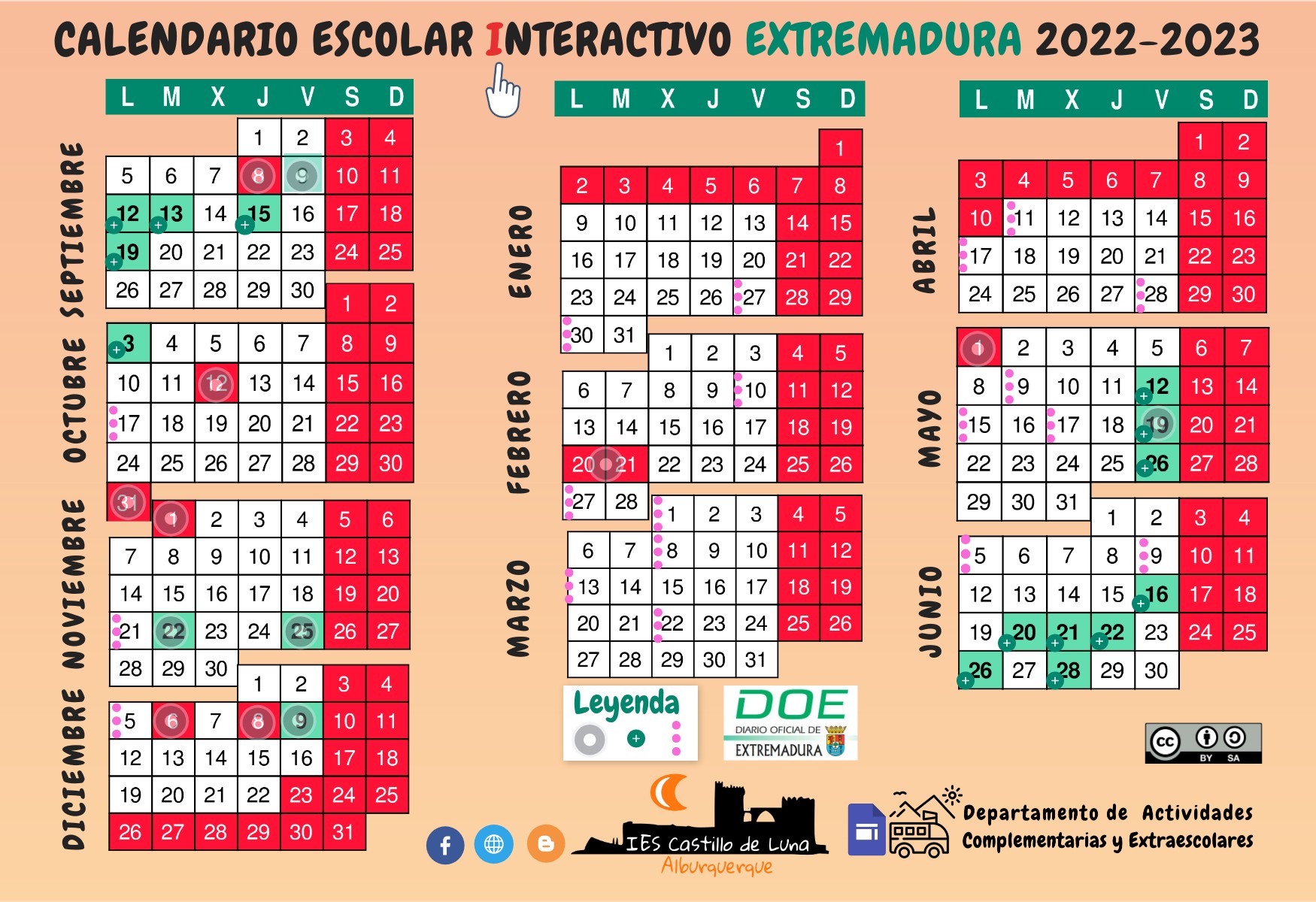 calendario escolar interactivo extremadura 2022-2023