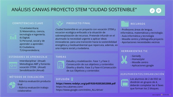Ciudad Sostenible es un proyecto con vocación STEM y vocacion ecológica enfocado a la situación de sobreexplotación de recursos. Pretende infundir en el alumnado la necesidad urgente a aplicar ideas innovadoras. para una transición hacia la sostenibilidad energética y medioambiental que repercuta, además, en una mejora social y ciudadana.