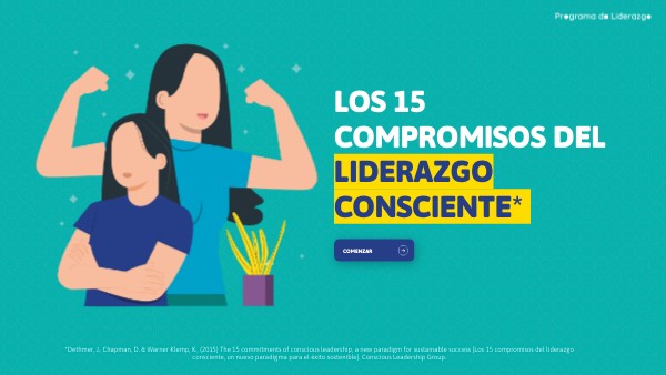 *Dethmer, J., Chapman, D. & Warner Klemp, K., (2015) The 15 commitments of conscious leadership, a new paradigm for sustainable success [Los 15 compromisos del liderazgo consciente, un nuevo paradigma para el éxito sostenible]. Conscious Leadership Group.