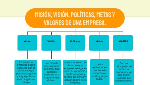 misión, visión, políticas, metas y valores de una empresa.