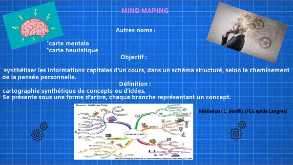 Objectif : synthétiser les informations capitales d’un cours, dans un schéma structuré, selon le cheminement de la pensée personnelle.