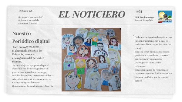 Es un trabajo en equipo en el que el alumnado nos hemos organizado en grupos para aprender a investigar, escribir, fotografiar, entrevistar y dibujar sobre distintas noticias que ocurren en nuestro cole y en el mundo. Queremos ser la voz de nuestro día a día.