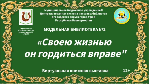 Мустай Карим - великий сын Башкортостана, выдающийся поэт, вышедший из глубины народных масс и ставший поистине народным. Волшебство его лиры, поэтическое многообразие его творчества известны у нас каждому, от первоклассника до ветерана. Так же как Башкирия невозможна без уральских хребтов или без Агидели, или без хлебных полей и нефтяных вышек, без певучего курая, так невозможна она без строк, без поступков, без мудрости Мустая Карима.Модельная библиотека №2 предлагает обзор книжной выставки «Своею жизнью он гордиться в праве», на которой представлена литература о жизни и творчестве Мустая Карима, а также его произведения.