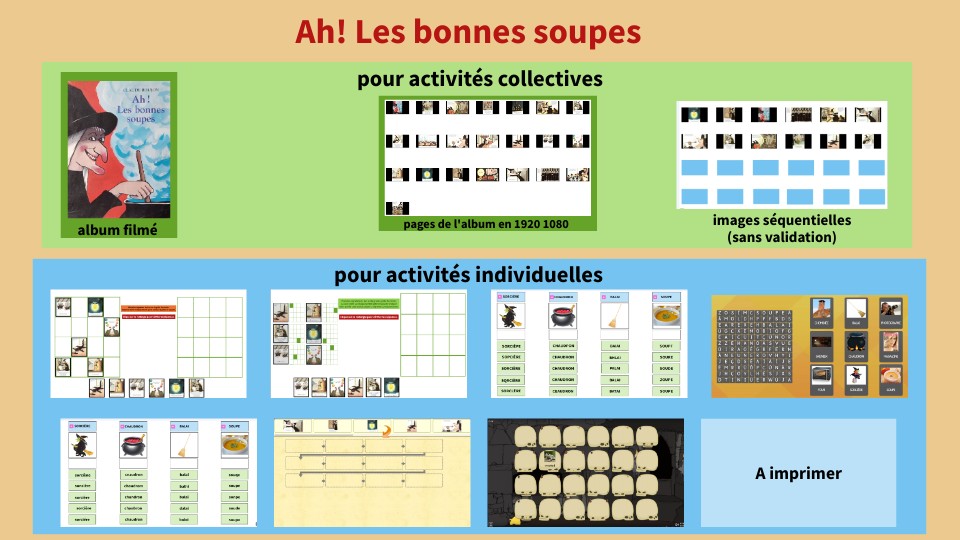 Place sur la grande grille de droite les vignettes que tu as découpées. La case verte sur chaque petite grille de gauche indique dans quelle case tu dois placer la vignette correspondante.