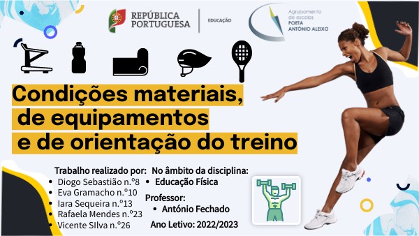 O presente trabalho foi desenvolvido através da proposta de trabalho do professor António Fechado, nomeadamente, no âmbito da disciplina de Educação Física.Tem como temática: " As condições materiais, de equipamentos e de orientação de treino"O nosso objetivo - meta é, mediante a nossa investigação, expor o papel fucral que os materiais e equipamentos desportivos têm na prática do desporto. Dando, de igual modo, destaque à promoção de uma orientação de treino adequada.