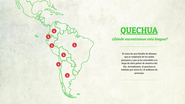 Se trata de una familia de idiomas que es originaria de los andes peruanos y que se ha extendido a lo largo de siete países de América del Sur. Actualmente, el quechua es hablado por entre 8 y 12 millones de personas.