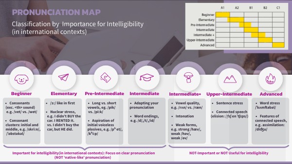 Important for intelligibility(in international contexts): Focus on clear pronunciation (NOT ‘native-like’ pronunciation)