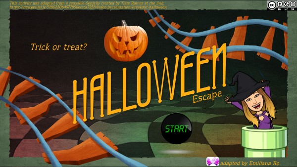 This activity was adapted from a reusable Genially created by Tista Ramos at the link: https://view.genial.ly/5f86220b4977856eccca7258/video-presentation-breakout-halloween