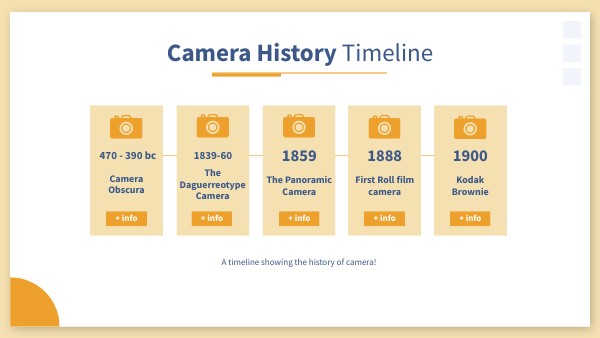 A timeline showing the history of camera!