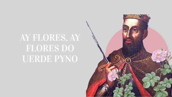- Ai flores, ai flores do verde pino Se sabedes novas do meu amigo? Ai Deus, e u é? Ai flores, ai flores do verde ramo Se sabedes novas do meu amado? Ai Deus, e u é? Se sabedes novas do meu amigo Aquel que mentiu do que pôs conmigo? Ai Deus, e u é? Se sabedes novas do meu amado Aquel que mentiu do que mi há jurado? Ai Deus, e u é? - Vós me preguntades polo voss'amigo E eu bem vos digo que é san'e vivo Ai Deus, e u é? - Vós me preguntades polo voss'amado E eu bem vos digo que é viv'e sano Ai Deus, e u é? E eu bem vos digo que é san'e vivo E será vosco ant'o prazo saído Ai Deus, e u é? E eu bem vos digo que é viv'e sano E será voscant'o prazo passado Ai Deus, e u é?