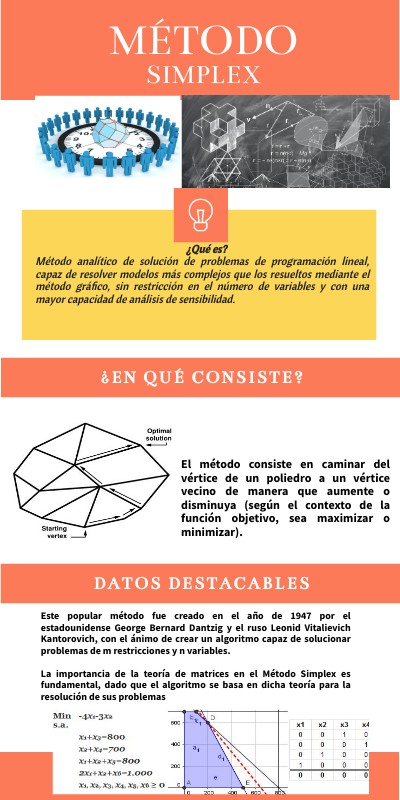 ¿Qué es?Método analítico de solución de problemas de programación lineal, capaz de resolver modelos más complejos que los resueltos mediante el método gráfico, sin restricción en el número de variables y con una mayor capacidad de análisis de sensibilidad.